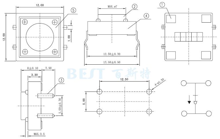 以上就是關于輕觸開關12×12的常見幾款產品的相關介紹,大家如果有不明白的地方,歡迎致電咨詢。其次,建議大家給輕觸開關12×12端子進行焊接時,不要在端子上施加負荷,以免因條件不同會有松動,變形及電特性劣化的可能。輕觸開關12×12對于平軸桿型,盡量按下開關中心部。對于鉸鏈結構,按下時軸桿按動位置將移動,請特別注意。如果使用開關的整機的周圍材料產生腐蝕性氣體,將有可能造成接觸不良等現象,所以請事先進行充分的確認。