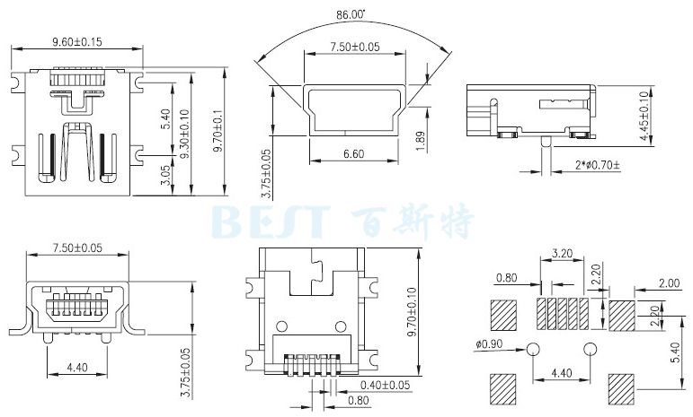 USB插座USB-4T-03貼片180°技術(shù)參數(shù)
